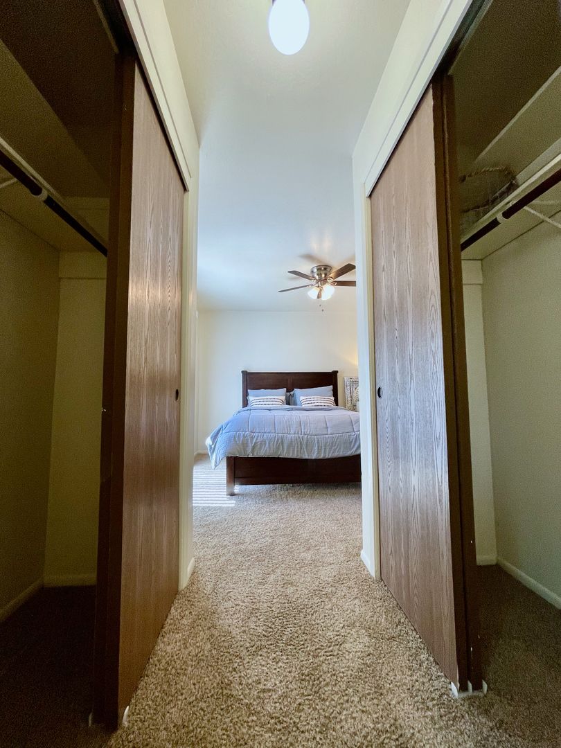 Our 1 Bedroom 1 Bath apartments have 2 full-sized closets that flank the hallway with additional storage available in the linen closet located in the bedroom. The downstairs 1 bedroom apartments include a fully enclosed private backyard for your peaceful enjoyment. Enjoy a neutral color scheme within the interiors of our apartment homes waiting for your life to accent them.