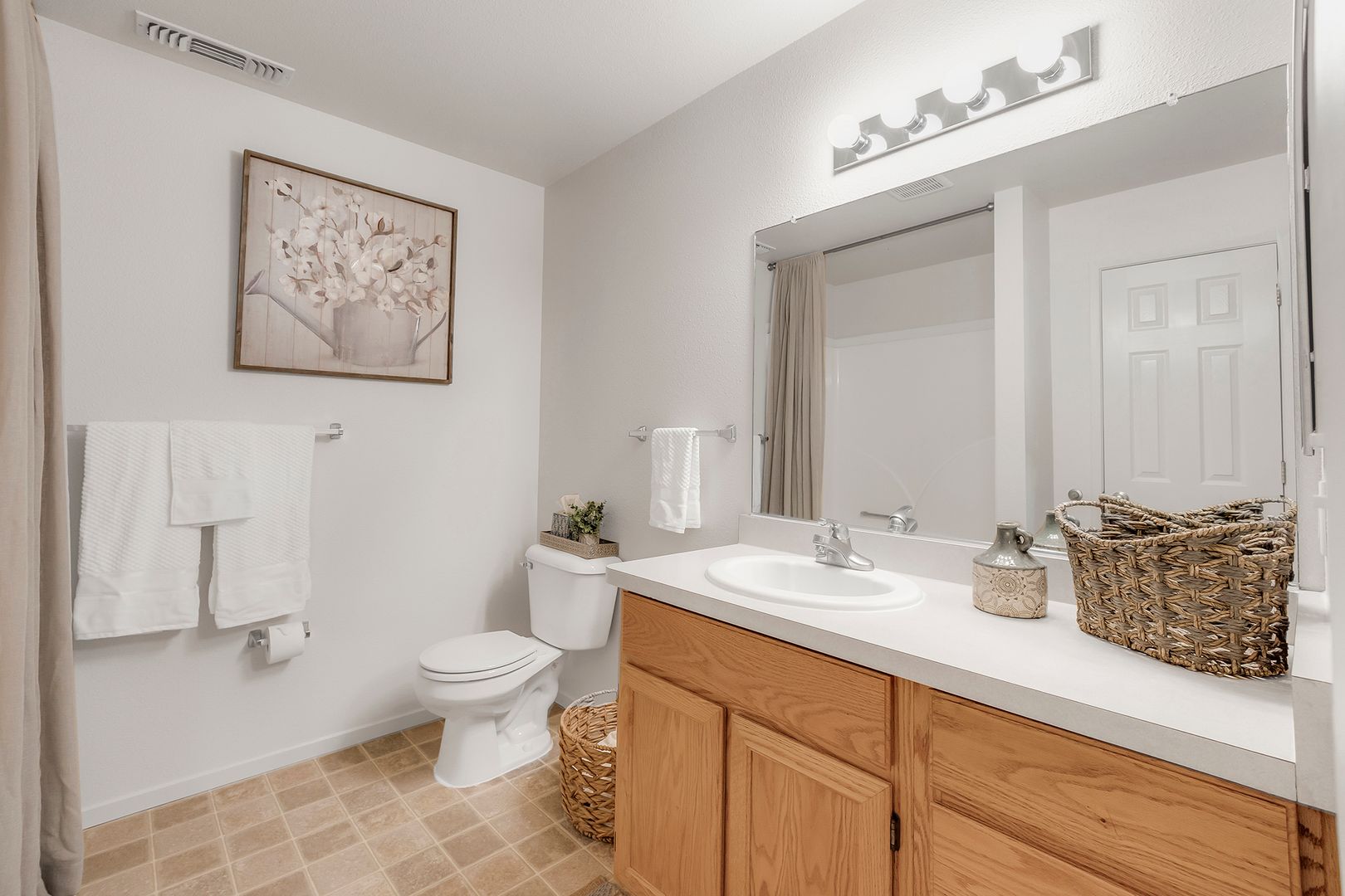 The spacious main bedroom has a large walk-in closet, a full bath with a shower and a ceiling fan for your comfort. The other two bedrooms are also large and ready for your furnishings.