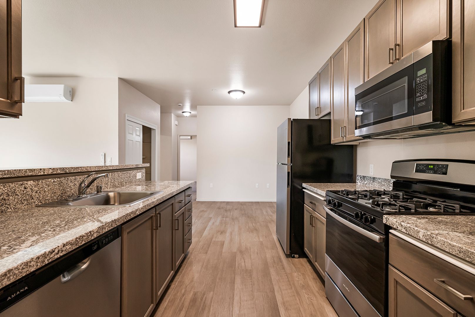 Our Brand New 2 bedroom, 2 bath apartment at Villa Risa Apartments features a private patio, custom cabinetry, gourmet kitchens with gas stoves and granite countertops. Custom planked flooring with plush carpeting in all bedrooms, full-size washer & dryer, and spacious closets. We offer quality apartment homes by a friendly and professional staff dedicated to your comfort and happiness. We want your life here to be enjoyable and to call Villa Risa Apartments home!