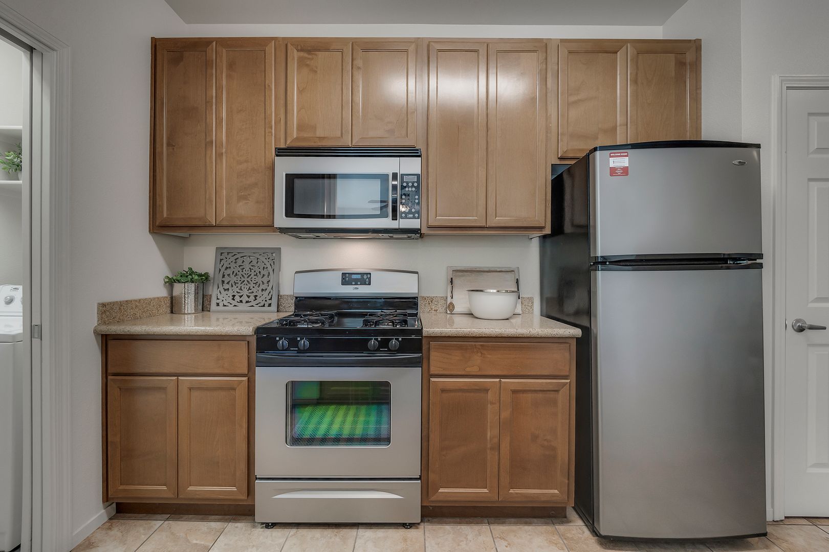 Our 1 bedroom, 1 bath apartment at Villa Risa Apartments features a private patio, custom cabinetry, gourmet kitchens with gas stoves and granite countertops. Plush carpeting, tiled entryways, full-size washer & dryer, and spacious closets. We offer quality apartment homes by a friendly and professional staff dedicated to your comfort and happiness. We want your life here to be enjoyable. We want you to call Villa Risa Apartments home!
