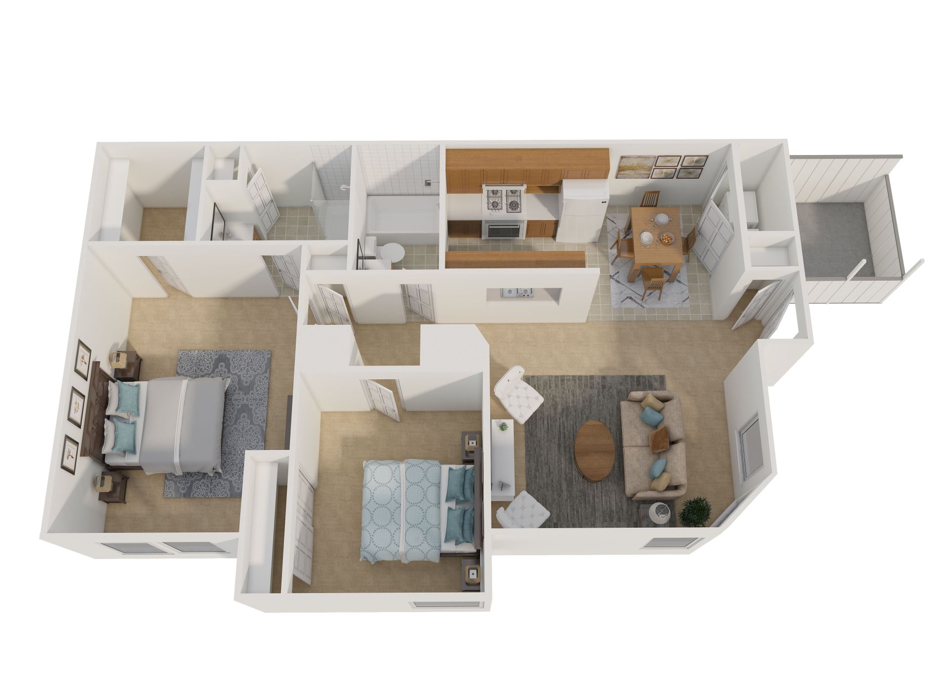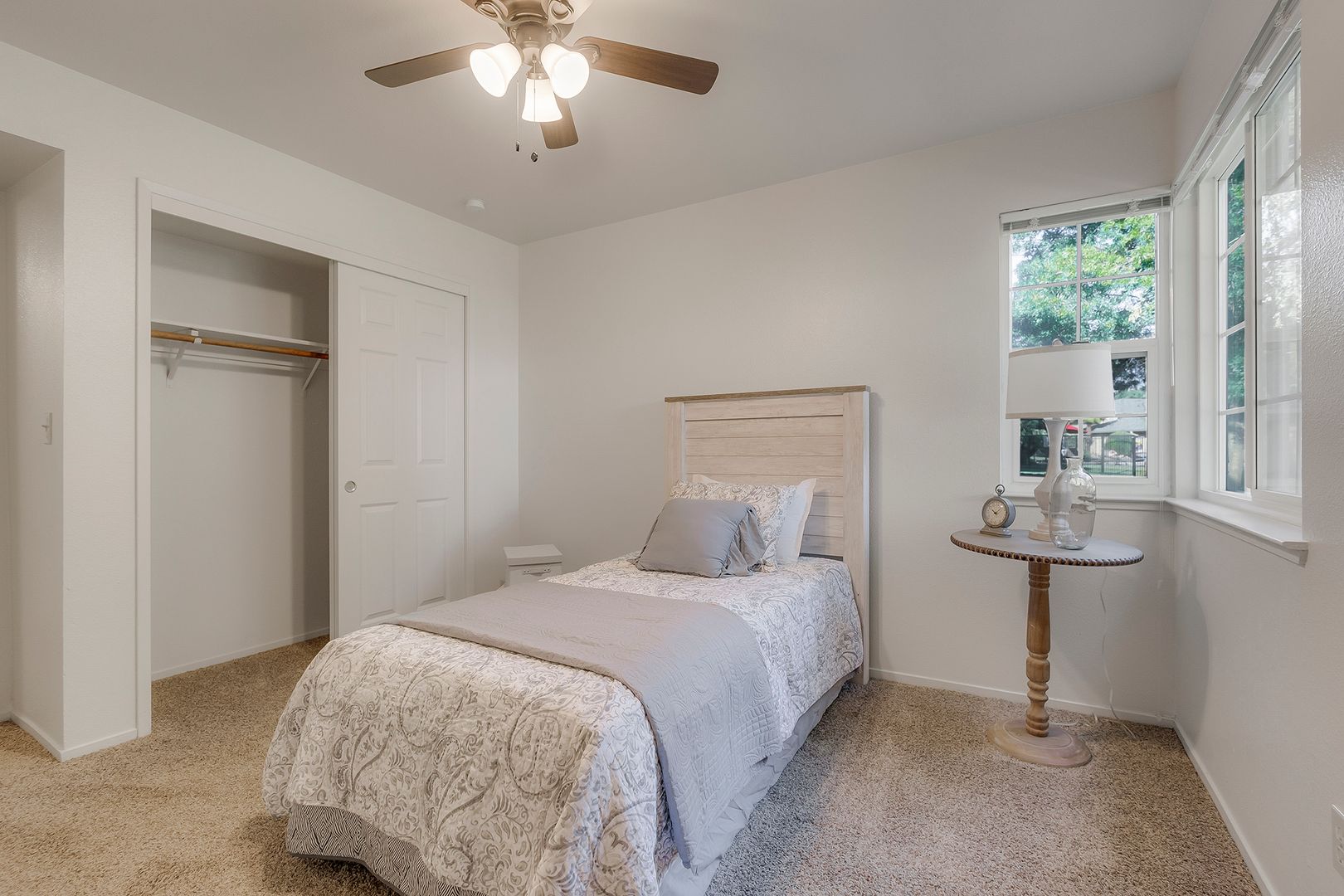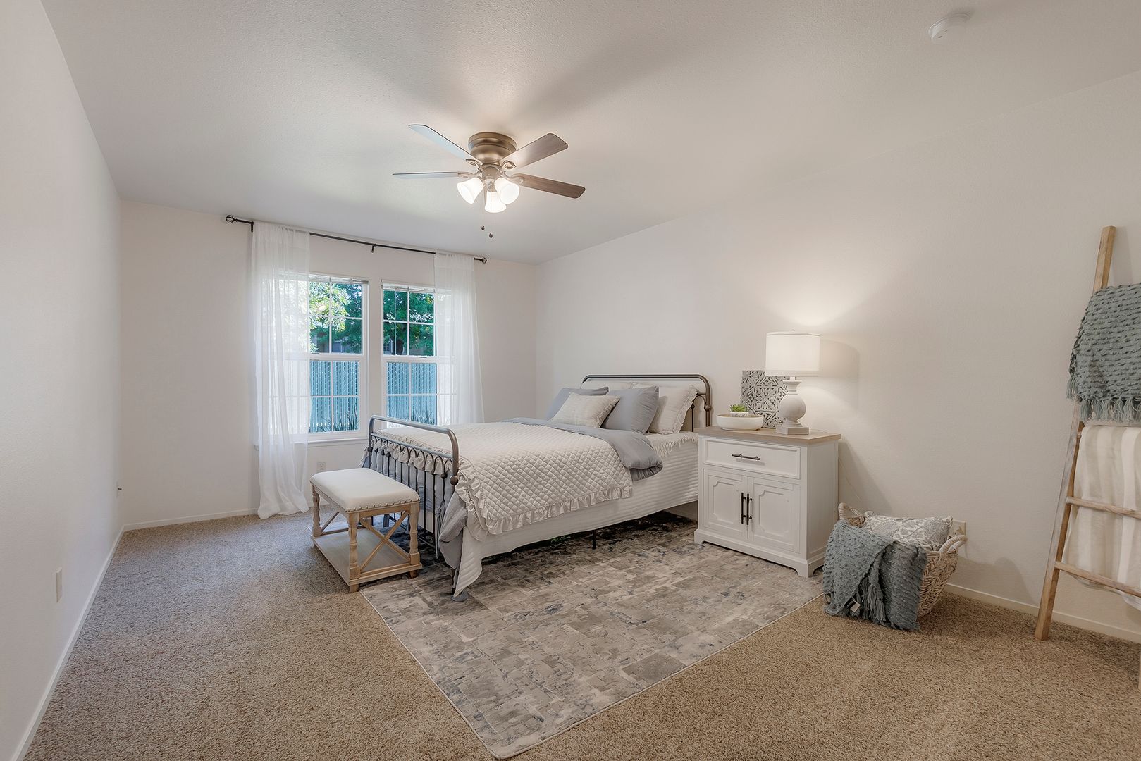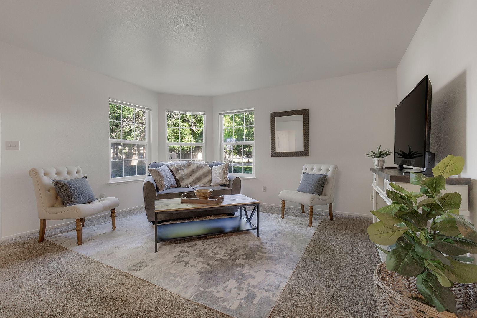 The bay windows light the entrance to our two bedroom apartment homes that offer the amenities that define luxury living; a huge walk-in closet accentuates the large main bedroom, enjoy extra comfort within two full sized bathrooms with linen closets, full sized washer & dryer, multiple closets provide you ample storage space, and you will enjoy the fresh Chico air from either your patio or balcony.