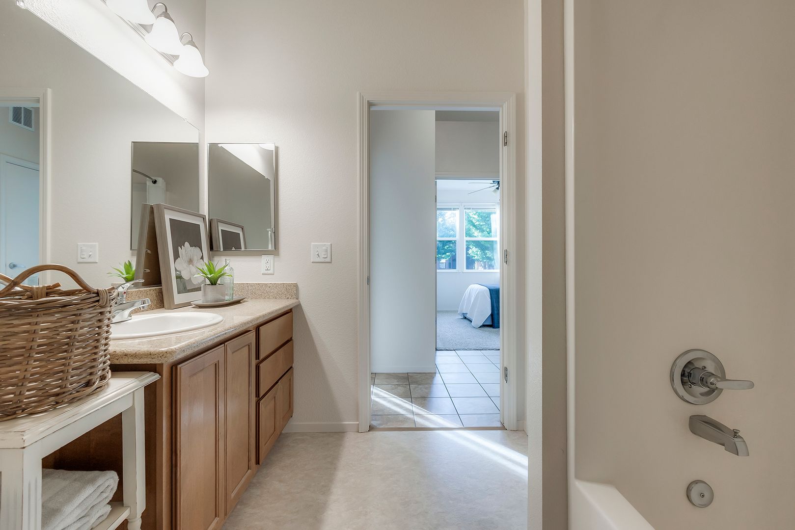 Our 2 bedroom, 2 bath apartment at Villa Risa Apartments features a private patio, plush carpeting, tiled entryways, full-size washer & dryer, and spacious closets, gourmet kitchens with gas stoves and granite countertops & custom cabinetry. We offer quality apartment homes by a friendly and professional staff dedicated to your comfort and happiness. We want your life here to be enjoyable. We want you to call Villa Risa Apartments home!